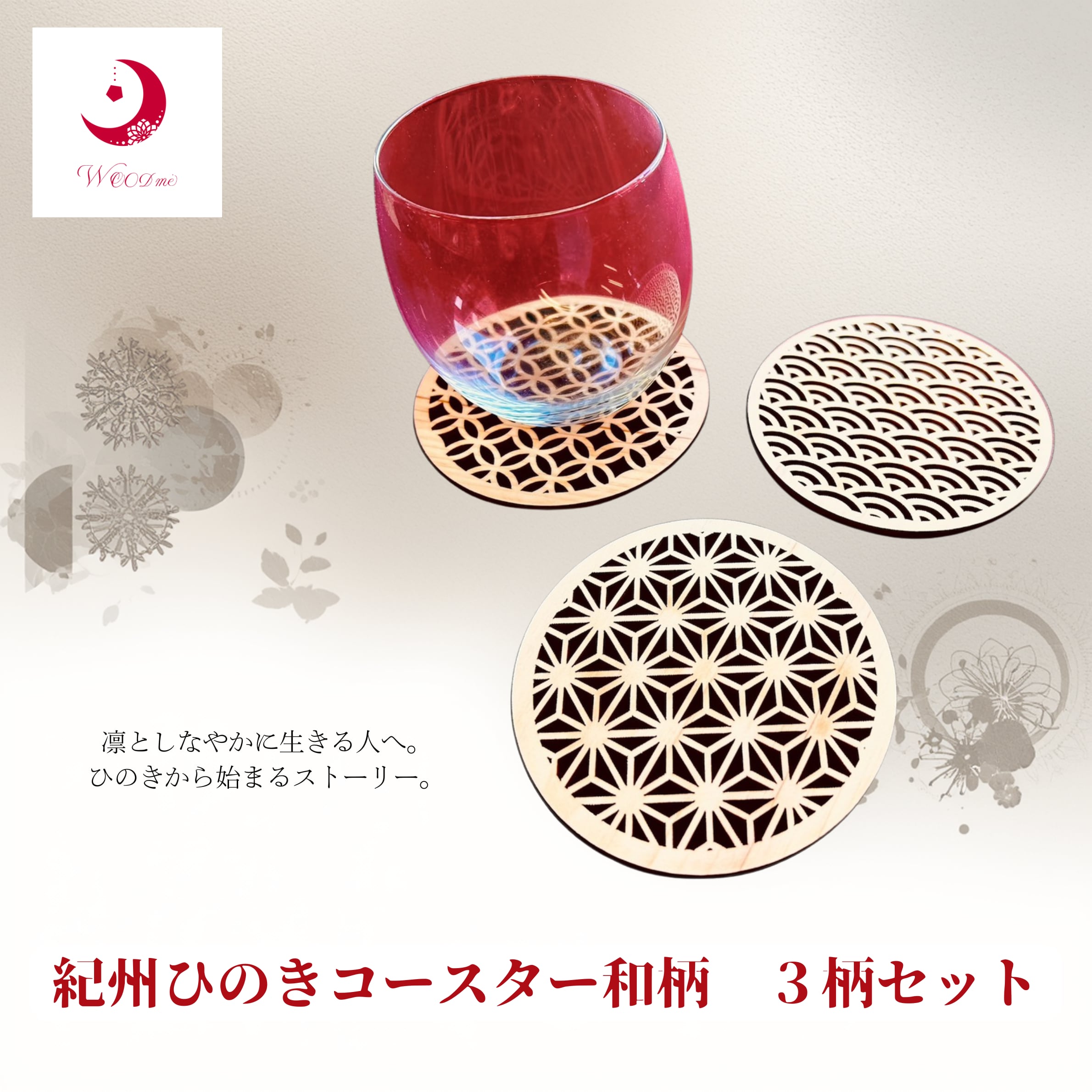 紀州ひのきコースター(ハイクオリティ) 和柄3枚セット